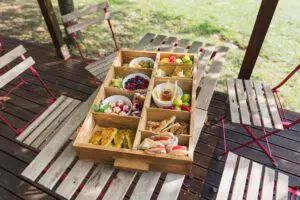 L’hotel è composto da 16 lodge tutte in legno chiaro con veranda attrezzata per il relax e la contemplazione della natura, ecosostenibili e perfettamente integrate nel verde. Sono molto spaziose, veri e propri appartamenti che ti fanno sentire come a casa..e non è poco.