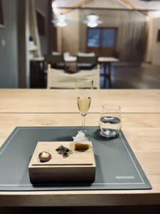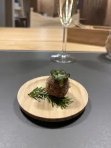 La serata trascorre in uno dei ristoranti dell’Hotel, denominato Le Felci, con chef bravissimi e molto determinati nel far conoscere tutte le bontà del territorio, ed è tutta produzione interna.
