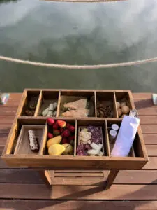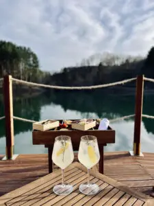 Al termine della nostra passeggiata arriviamo al lago.. Che dire del delizioso aperitivo organizzato in riva al tramonto? Gli snack sono deliziosi e anche il cocktail creato dal Bar Manager della struttura.