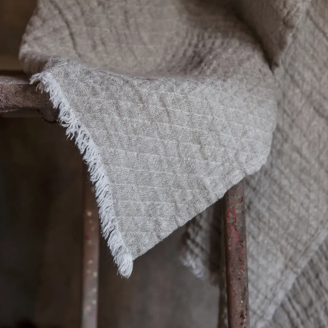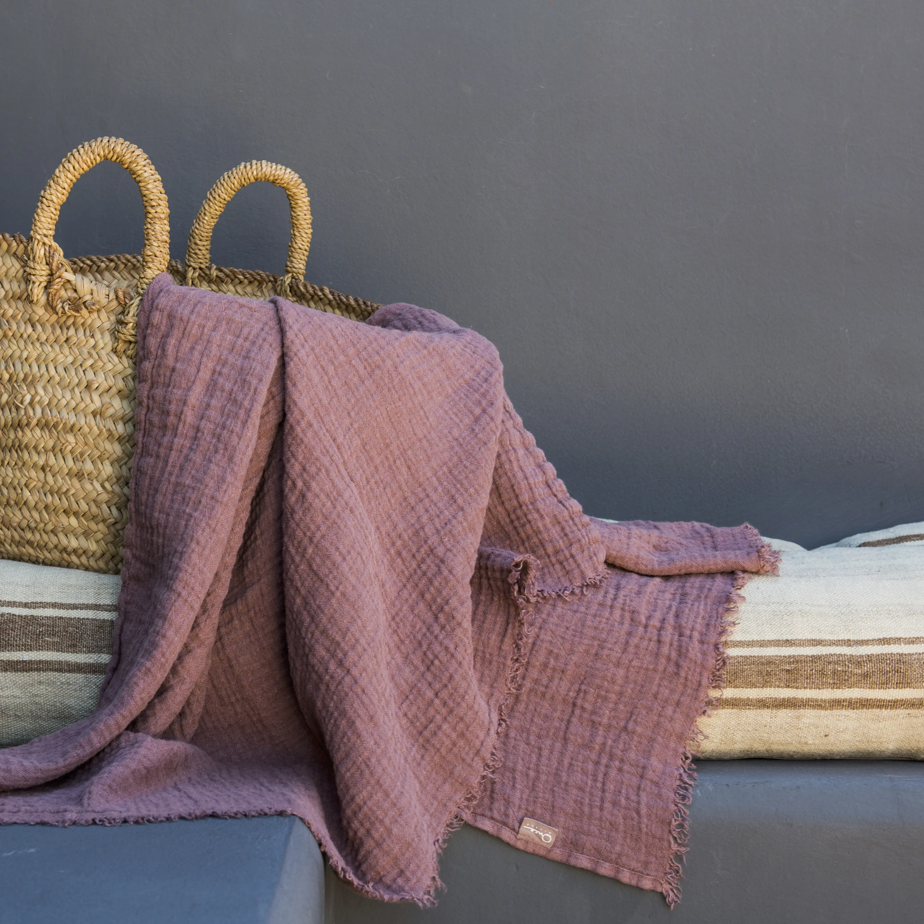 Il plaid in lino sfrangiato conferisce un tocco disinvolto ed elegante a qualsiasi tipo di arredo. Disponibile in un vasto assortimento di colori e realizzato al 100% in lino italiano fatto a mano, รจ una scelta elegante e pratica, sia appoggiato a mรฒ di drappeggio su un divano o sul letto sia usato come comoda copertura nelle serate piรน fresche.