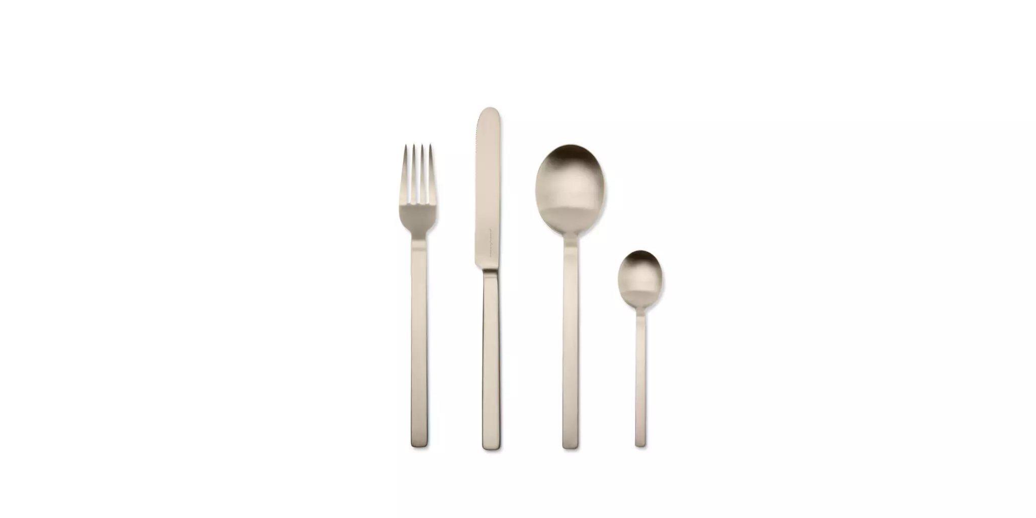 4 pezzi: 1x cucchiaio da tavola, 1x forchetta da tavola, 1x coltello da tavola, 1x cucchiaino da caffรจ
