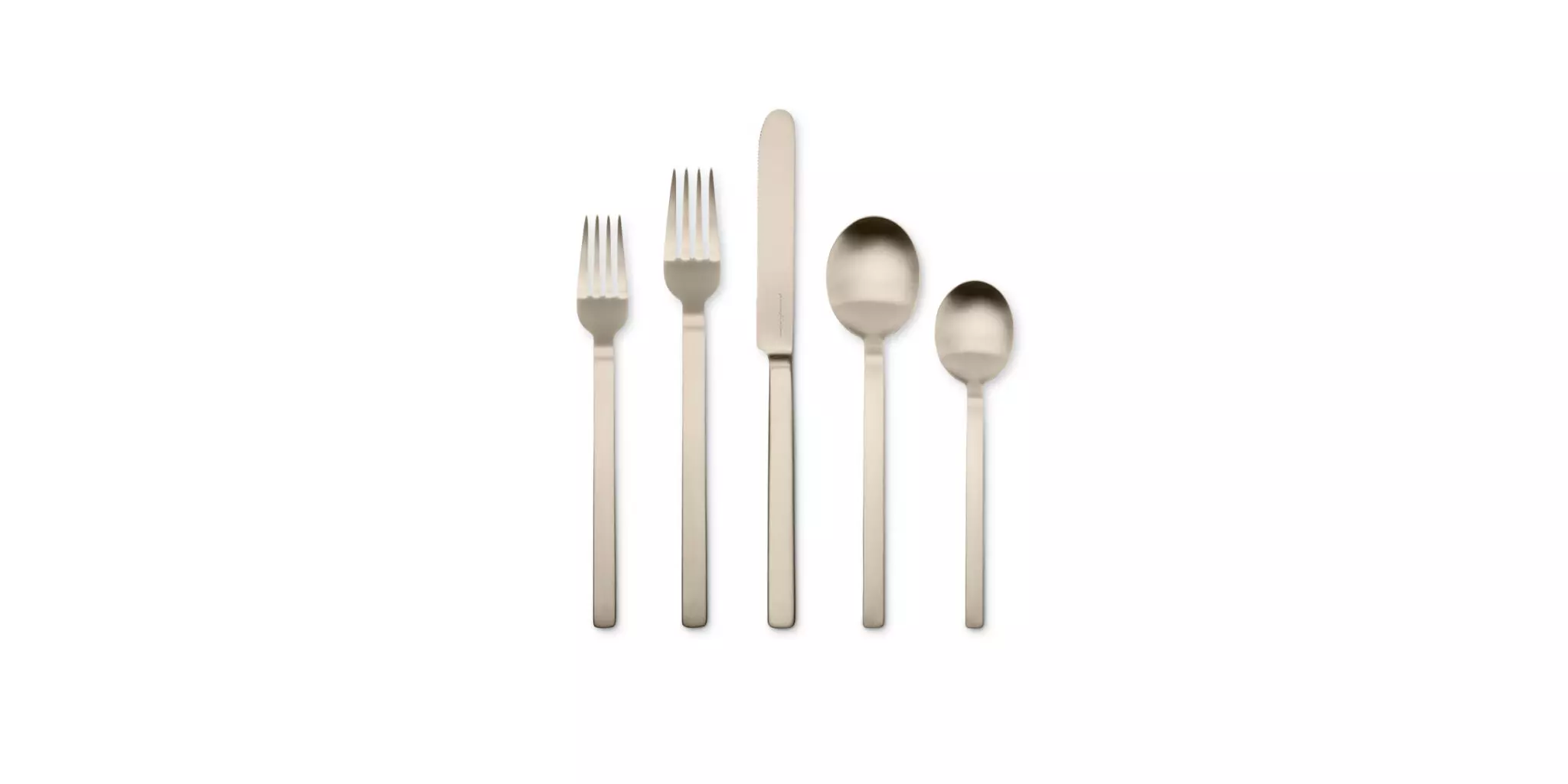 5 pezzi: 1x forchetta da tavola, 1x coltello da tavola, 1x cucchiaio da dessert, 1x forchetta da dessert, 1x cucchiaio da caffรจ USA