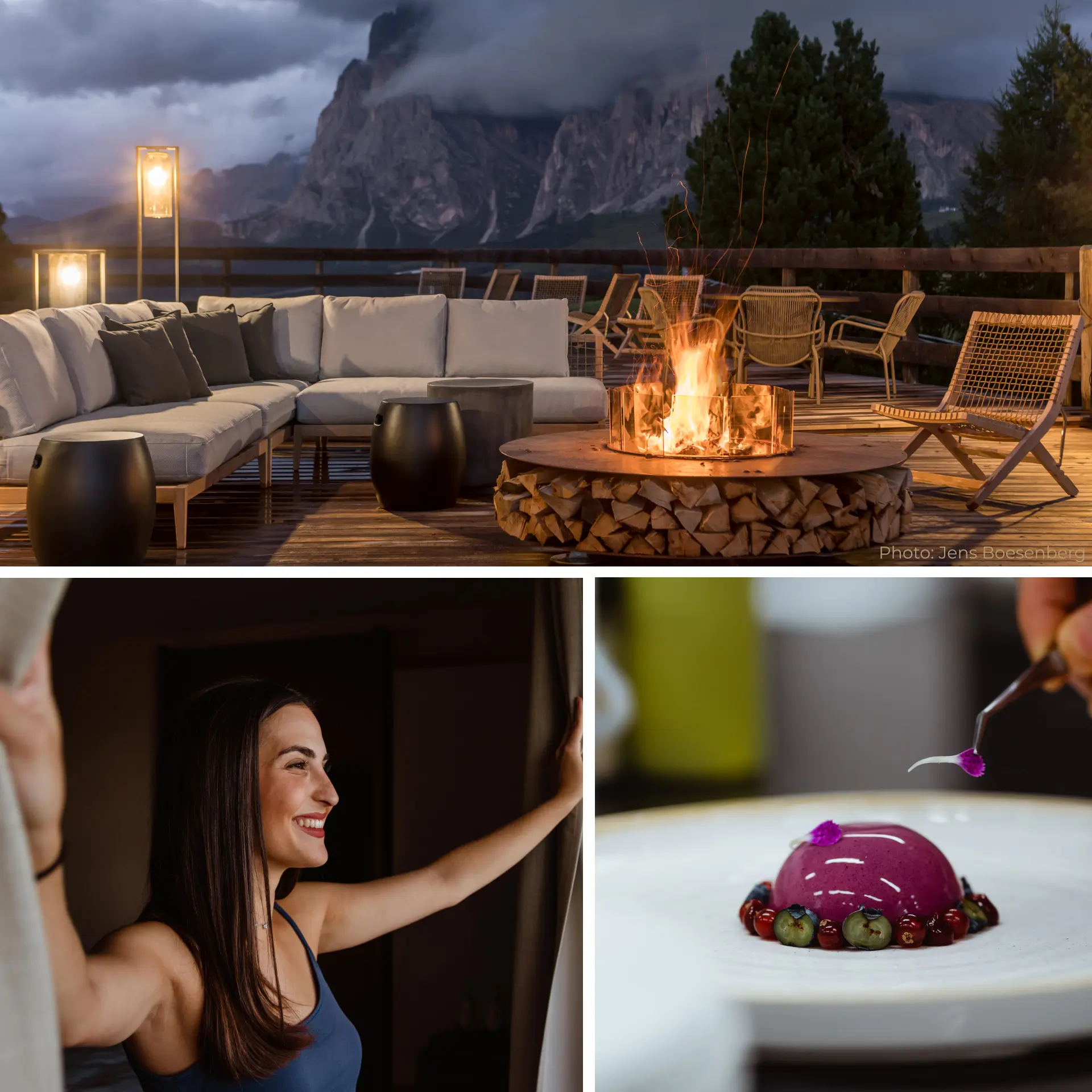In estate, le Dolomiti sono un vero paradiso per gli escursionisti, con innumerevoli sentieri che vantano incredibili viste sulle montagne circostanti. Per i più appassionati è possibile svolgere diverse attività quali arrampicata su roccia, mountain bike o parapendio. Gli amanti del lusso scopriranno bellissimi campi da golf e passeggiate a cavallo. E, come ciliegina sulla torta, l’ hotel offre lezioni gratuite di yoga all’ alba con viste mozzafiato per chi cerca la pace dei sensi.