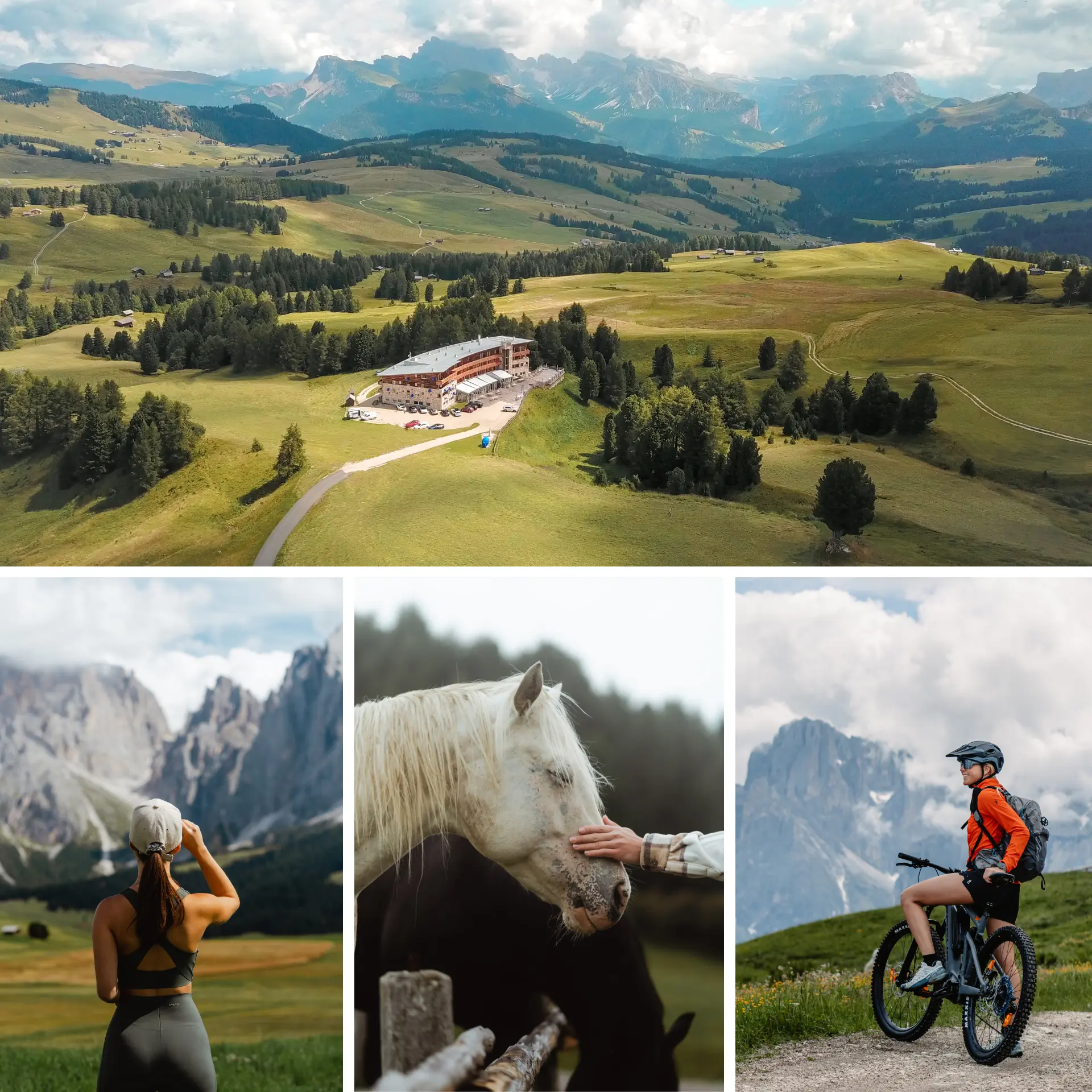 Venite a scoprire un luogo incantevole, sopra le nuvole, che giace nel cuore delle Dolomiti italiane ad un’ altitudine di oltre 2000 metri, patrimonio mondiale dell’ UNESCO: Paradiso Pure.Living. Qui avrete il piacere di godervi indimenticabili albe e il tiepido bagliore alpino di tramonti in quota, arcobaleni sopra prati in fiore e mandrie di cavalli liberi al pascolo. Sullo sfondo alcune delle cime più famose al mondo o infiniti pendii