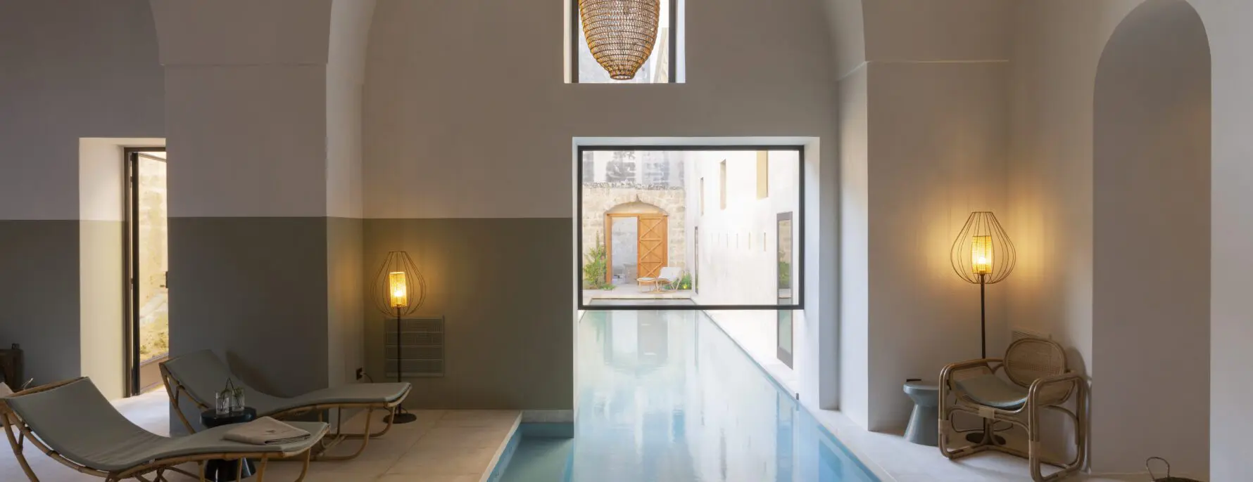 Palazzo Tafuri is an elegant boutique hotel located in the heart of Nardò, Puglia, housed in a historic palace dating back to the 17th century, with a neoclassical façade added later. Originally the residence of the Zimara family and later of the Tafuri family, the building has been carefully restored by its current owners, the Count and Countess d’Espous, in a two-year project led by architect Claudio Colaci and designer Vincent De Cat, skillfully blending Salento Baroque with contemporary style.