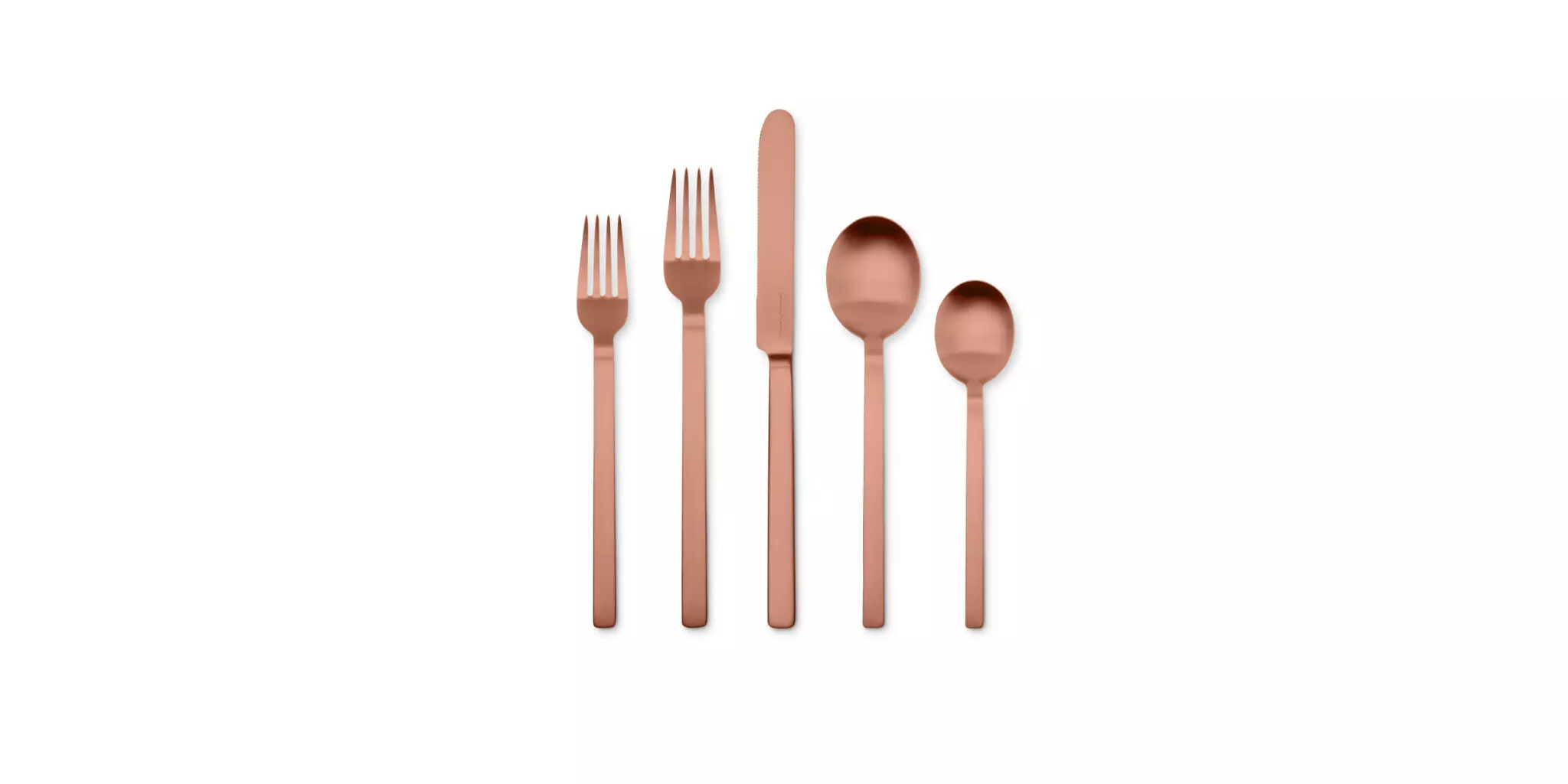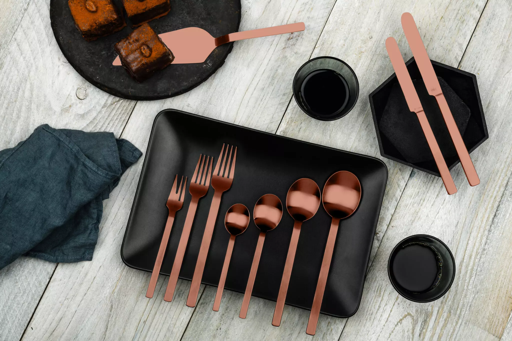 The surface treatment that gives the colour is a PVD process (Physical Vapour Deposition). Ions of titanium nitride and zirconium nitride are deposited on the surface of the cutlery through a vacuum process.