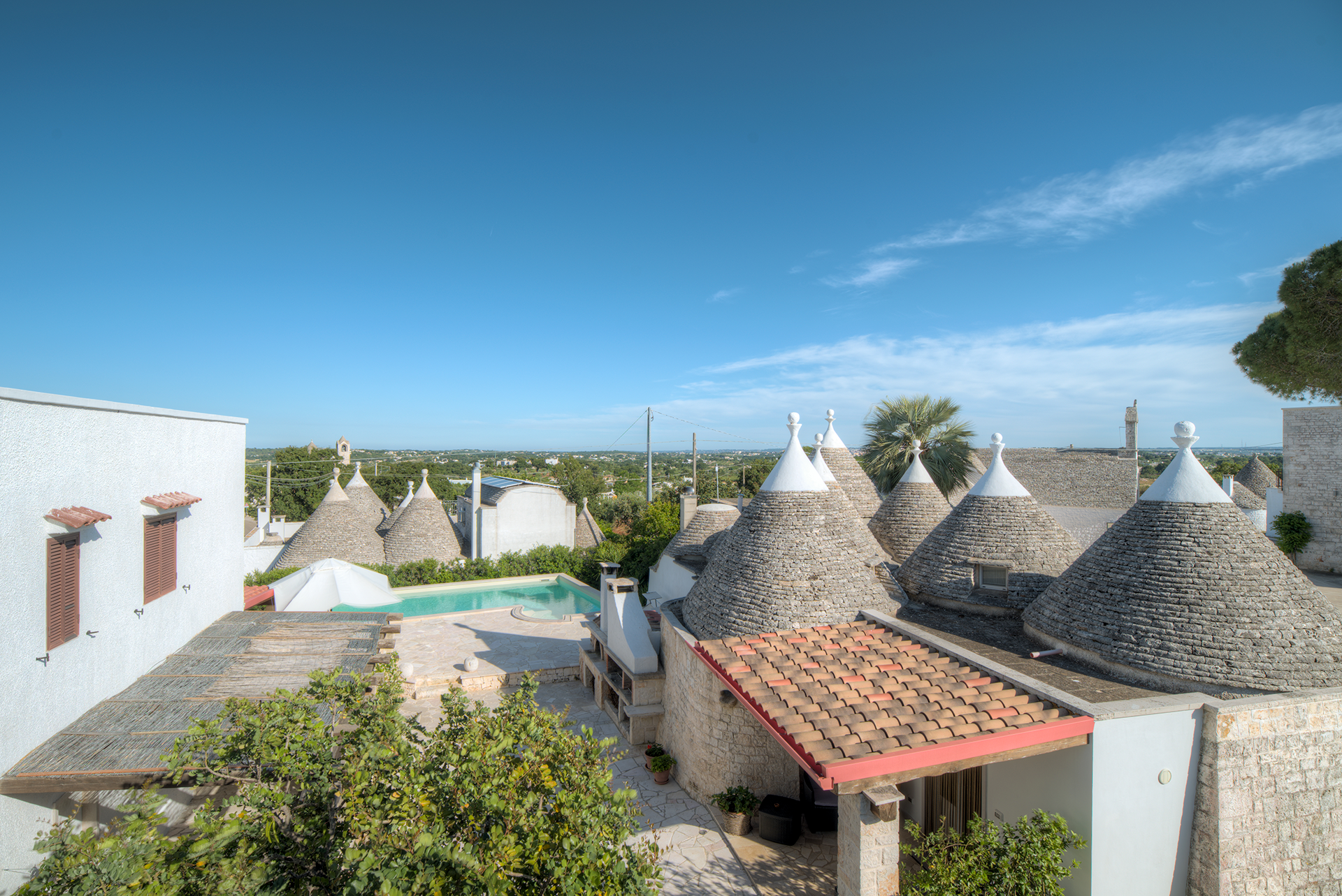 Tucked away in the historic village of Locorotondo, Trulli La Piazzetta is a stunning collection of traditional Apulian dwellings. Meticulously restored, this charming home features original stone walls, iconic conical roofs, and a peaceful outdoor courtyard perfect for al fresco dining or a quiet morning coffee. With 5 bedrooms, a full kitchen, and elegant, rustic interiors, it’s ideal for groups of friends or families seeking an immersive and stylish retreat in the Itria Valley.