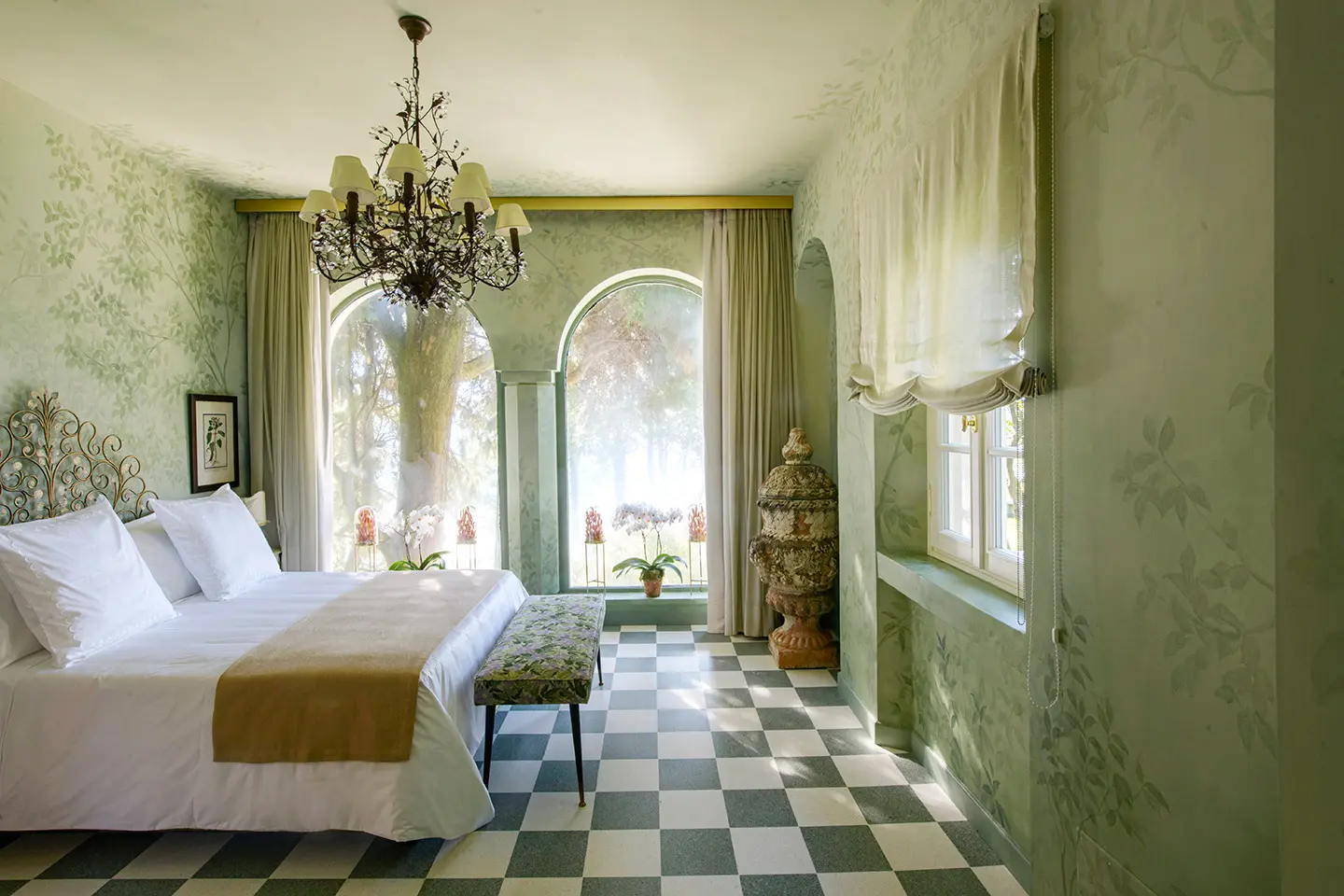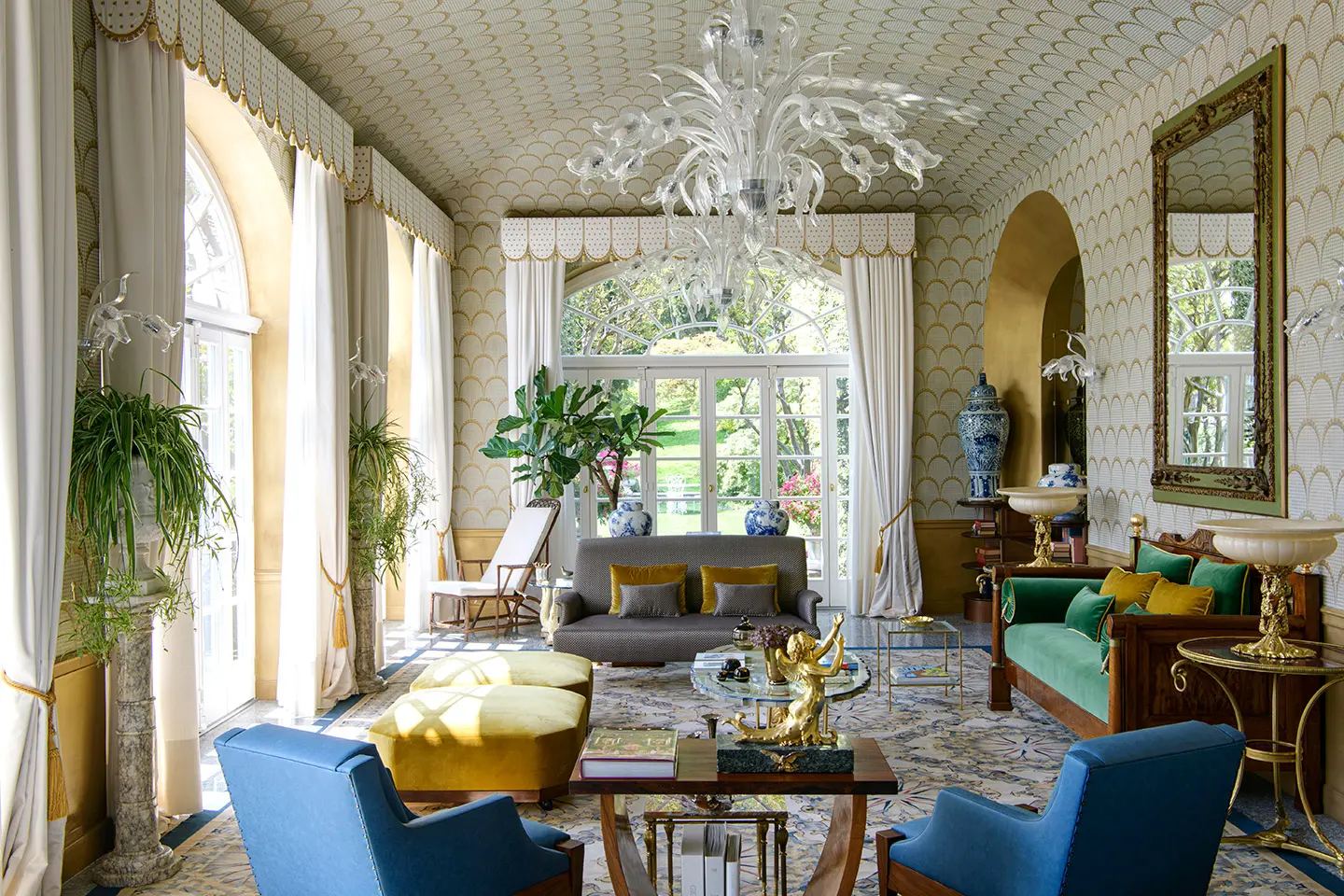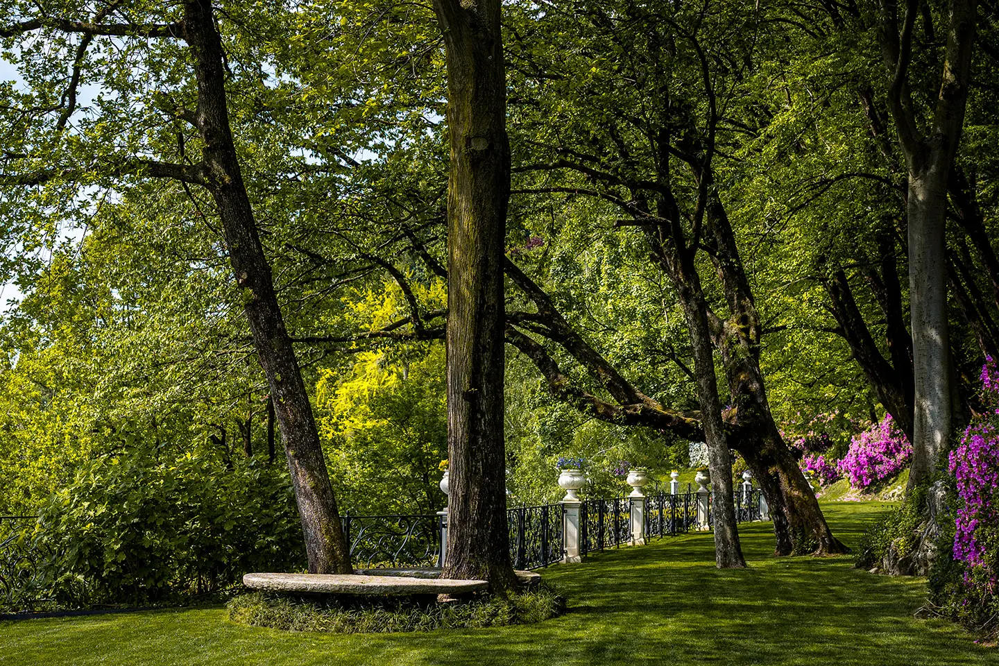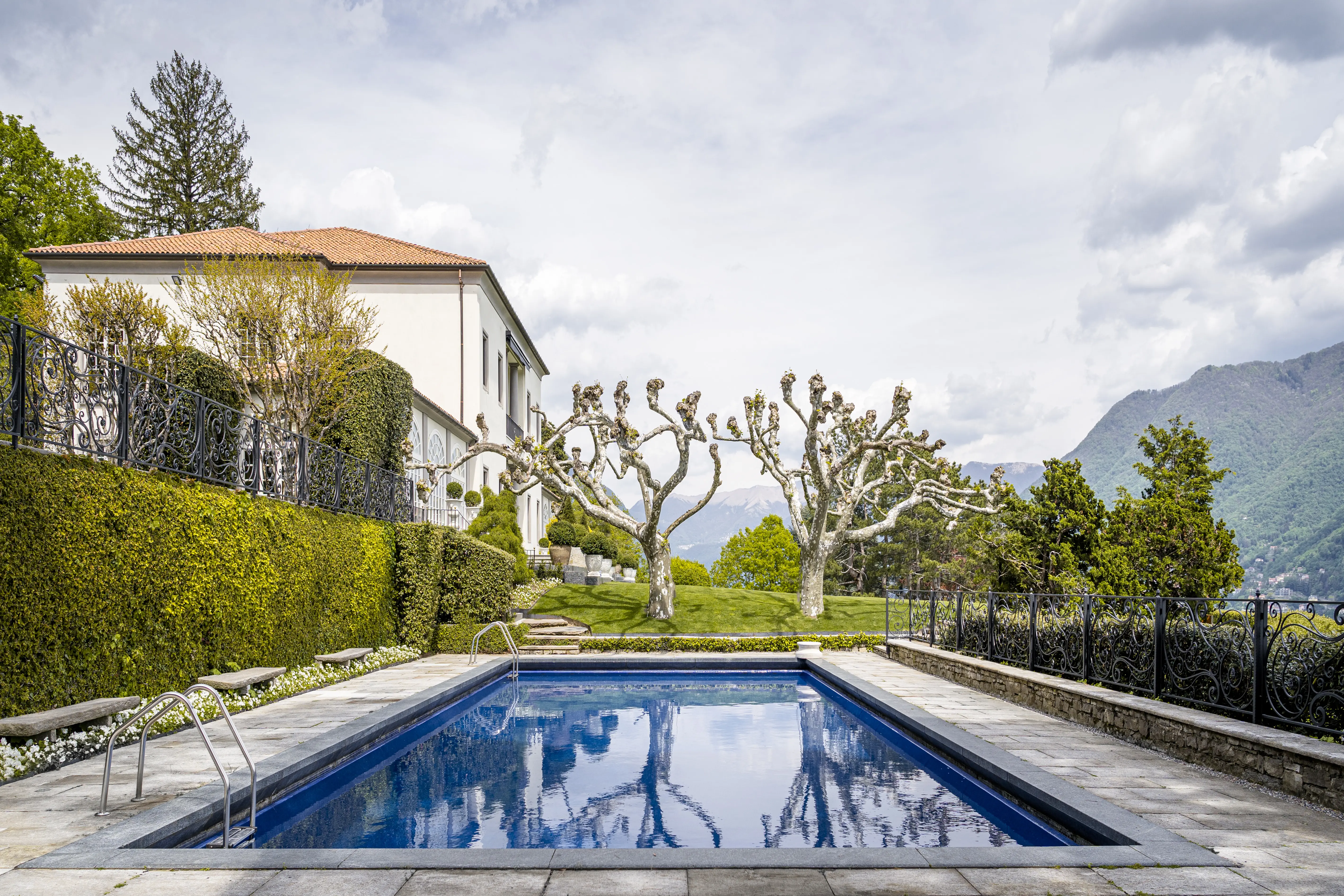 A garden with a unique charm, created on different levels connected together by stone stairs and pathways that surround the Villa giving always different views. These large terraces have enabled the garden to be enriched with a large circular parterre, a swimming pool and a romantic promenade by the forest. The swimming pool adds value to the garden of Villa Bonomi, with its blue mosaic floor, specifically designed to avoid indiscreet reflections of light. This is the perfect place to relax and meditate during your stay.