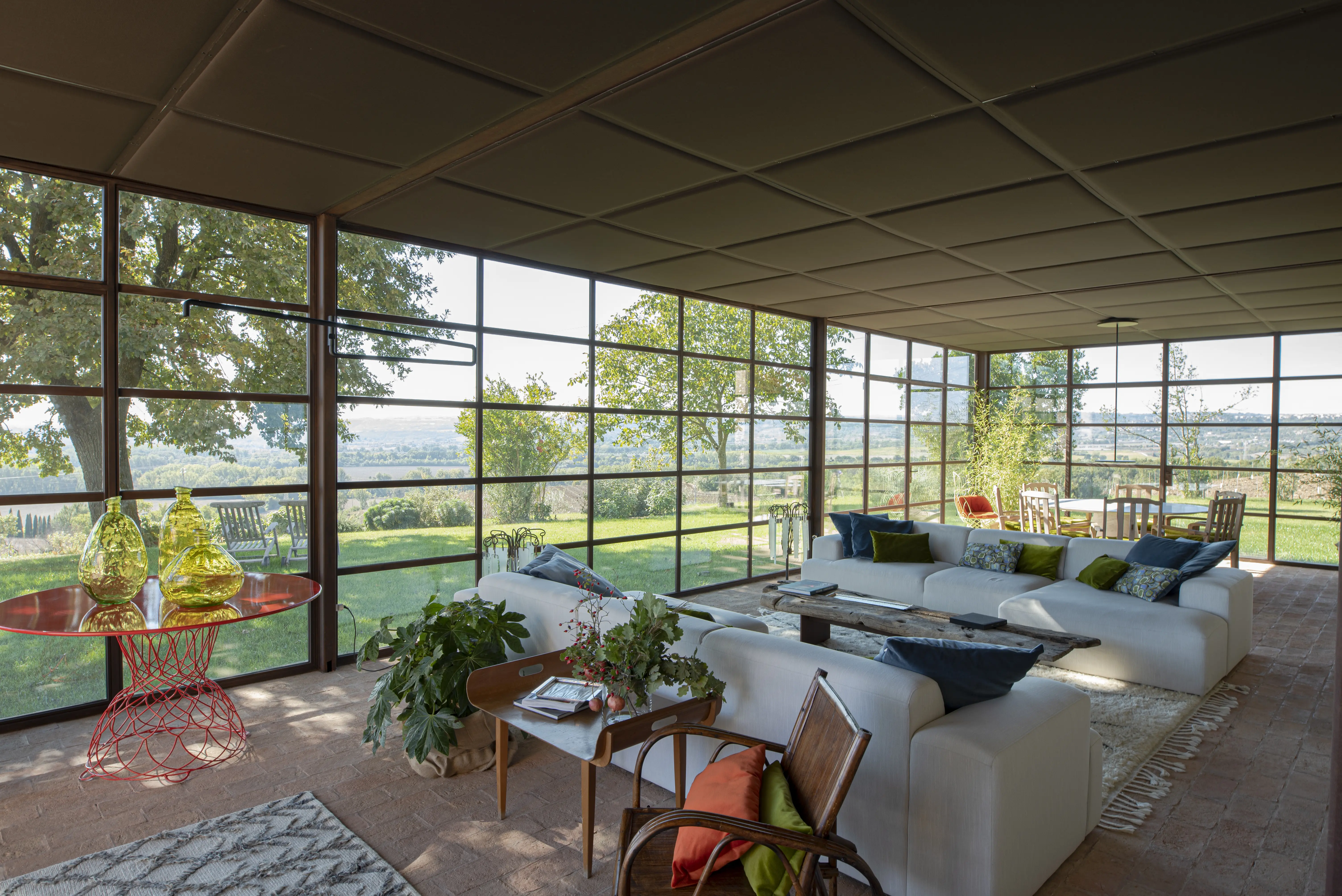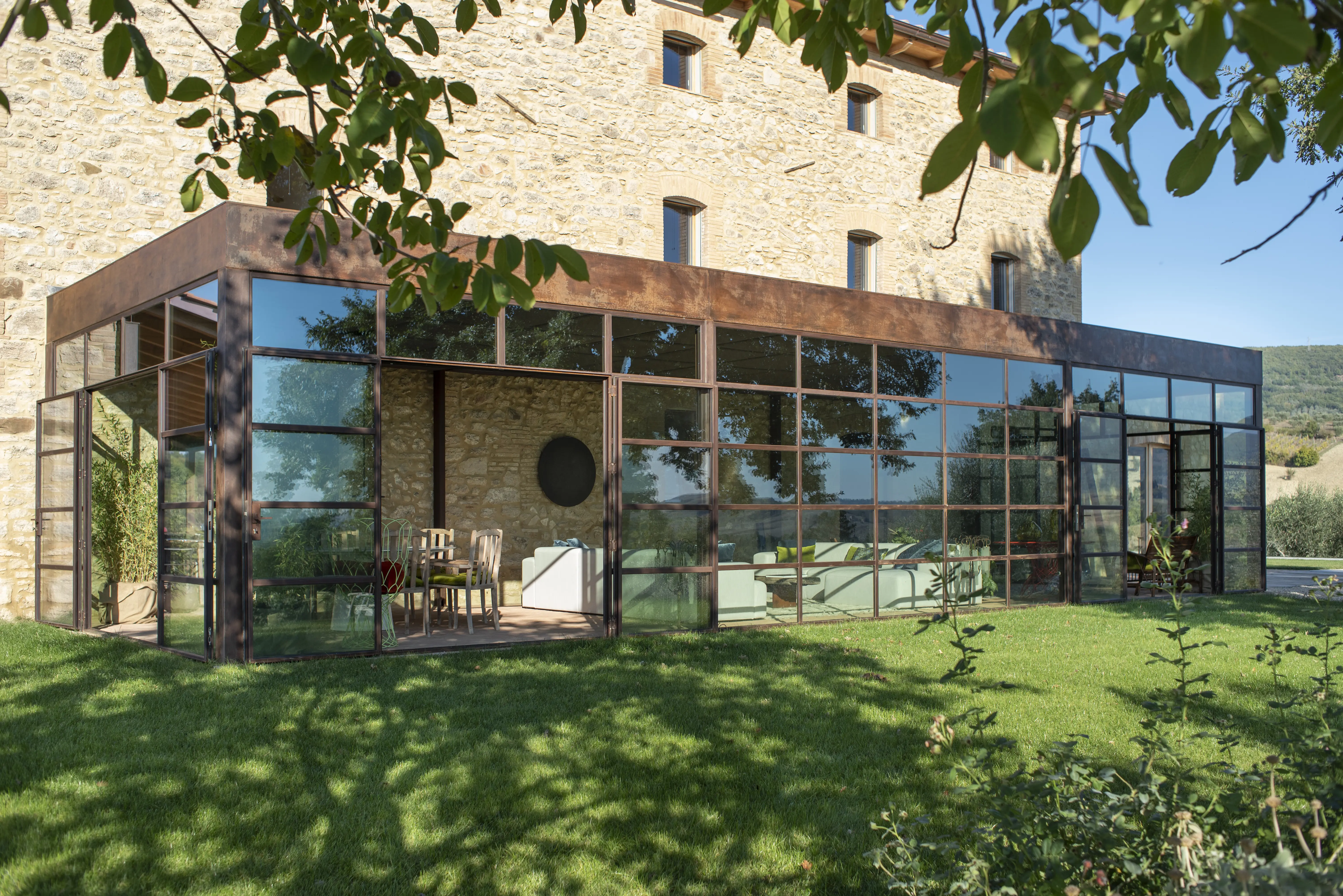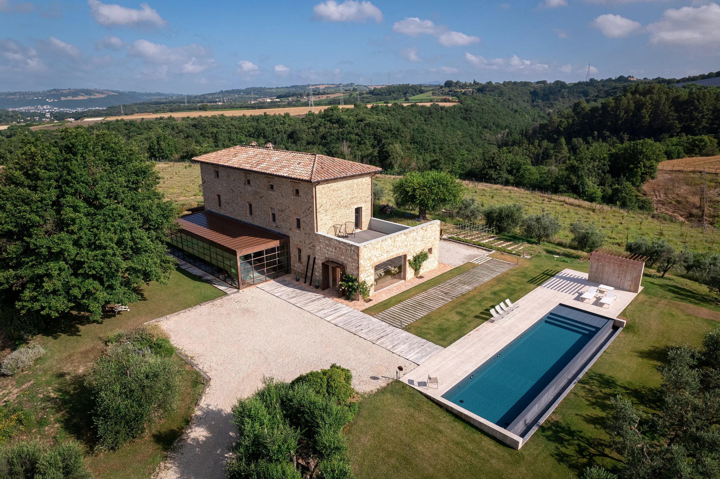 The villa is entirely made of stone and consists of three floors. Every corner of this country house tells of a fascinating encounter between history and design. Inside you will find real interpretations of furniture and art, symbol of Italian design, which blend harmoniously with the ancient walls. All the designers and artists involved in the realization of this country house have contributed with their creations to make all the environments unique and singular.